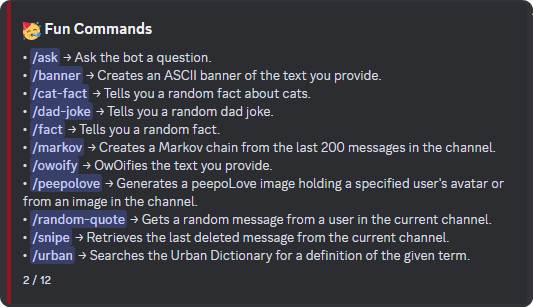 Sx Bot offers a wide variety of games, fun, and social commands for your Discord server. Here is a list of some of our popular commands!